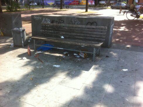 Zwei Tage schönes Wetter, drei Bands auf dem Küchengarten, alle Bänke komplett zugemüllt! So sieht ein Wochenende am Küchengartenplatz aus. Wundert sich da noch jemand, dass die Anwohner langsam die Nase voll haben? Linden ist tolerant, eigentlich.