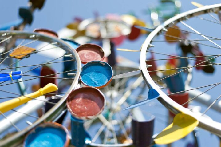 Auch das Thema „Recycling“ spielte eine tragende Rolle. Unsere Ressourcen sind endlich. Das Projekt setzt ein Zeichen für die Nachnutzung von Gegenständen, die sonst auf dem Müll landen würden. Die Skulptur ist zum größten Teil aus Recycling-Materialien gebaut. Bei der Erstellung der WindSolarSkulptur lernten die Teilnehmer, wie wichtig die nachhaltige Erzeugung von Energie und Ressourcenschonung für unsere Zukunft ist. An seinen Standorten wird die WindSolarSkulptur die Betrachter anregen, sich mit den Thema Klimaschutz, Energie und Recycling auseinander zu setzen.