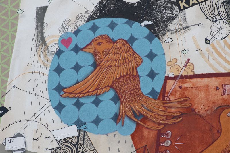 Die Hommage an die Arbeit von Kurt Schwitters entstand in Anlehnung an das 1919 entstandene Werk „Das Undbild“. Dazu wurden Teile aus dem Schwitters Zitat „Das Leben ist eine herrliche Erfindung“ in das Kunstwerk integriert.