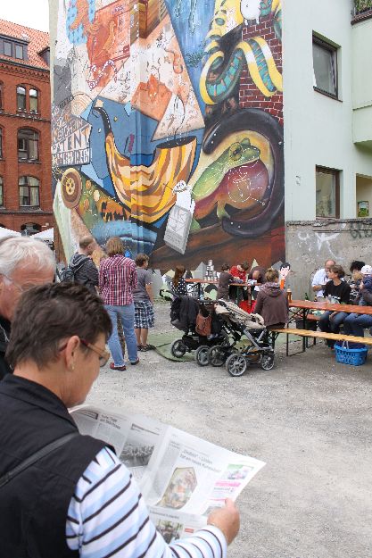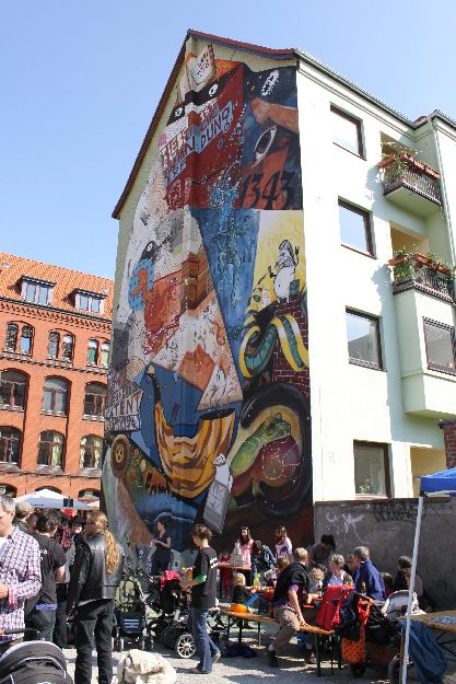 Die Einweihung des Wandbildes fand am 01. Juli 2011 statt. Mit toller Unterstützung einiger Sponsoren wurde ab 15 Uhr auf dem Parkplatz gefeiert. Das Pfannkuchenhaus sorgte für herzhafte Speisen, BUM-Bier, das an diesem Tag auch gleich noch den ersten Geburtstag feierte, sorgte für die Getränke. Von den Hausbewohnern wurden leckere Kuchen beigesteuert. Die Calenberger Radkultur und der Förderverein der Albert-Schweitzer-Schule waren mit netten Aktionen für die Kinder vor Ort.