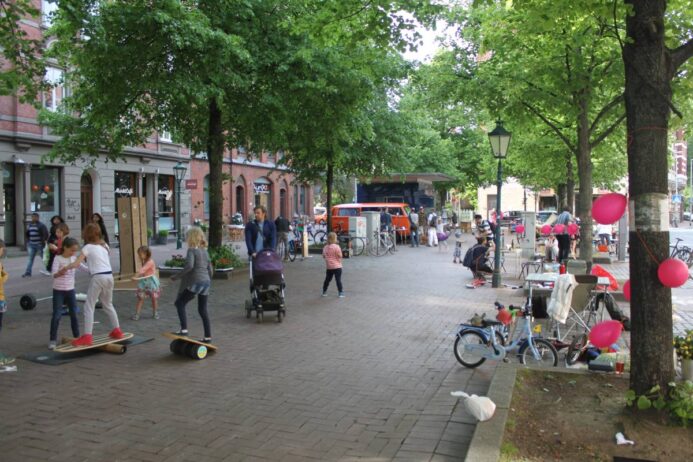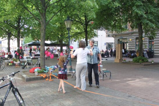 Am Samstag hieß es nach dem Wochenmarkt, auf dem Lindener Marktplatz „Aus Parkraum wird Lebensraum“. Das hat definitiv geklappt. Wo sonst ein Auto neben dem Anderen parkt, war Spaß und Spiel mit vielen kreativen Ideen angesagt.