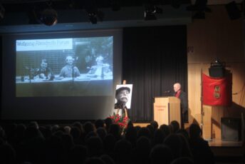 Am Sonntag, den 10.02.2019 fand in seinem Freizeitheim die Gedenkfeier für Egon Kuhn statt. Viele hundert Lindener waren gekommen, um sich vom roten Egon zu verabschieden. Der große Saal reichte für die Gästeschar nicht aus, daher wurde die Veranstaltung auch noch per Video in das Ferry übertragen. Auch dort blieb kaum ein Platz unbesetzt.