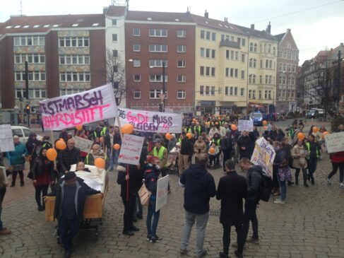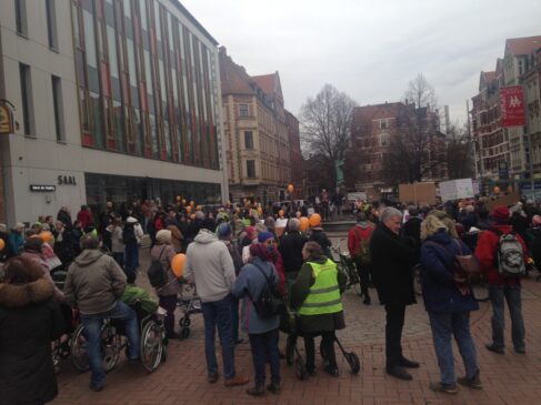 Gegen diese Pläne zogen am Mittwoch, den 06.03.2019 mehrere hundert Bürger, Bewohner und Angehörige vom Seniorenzentrum Godehardistift zum Lindener Markt.