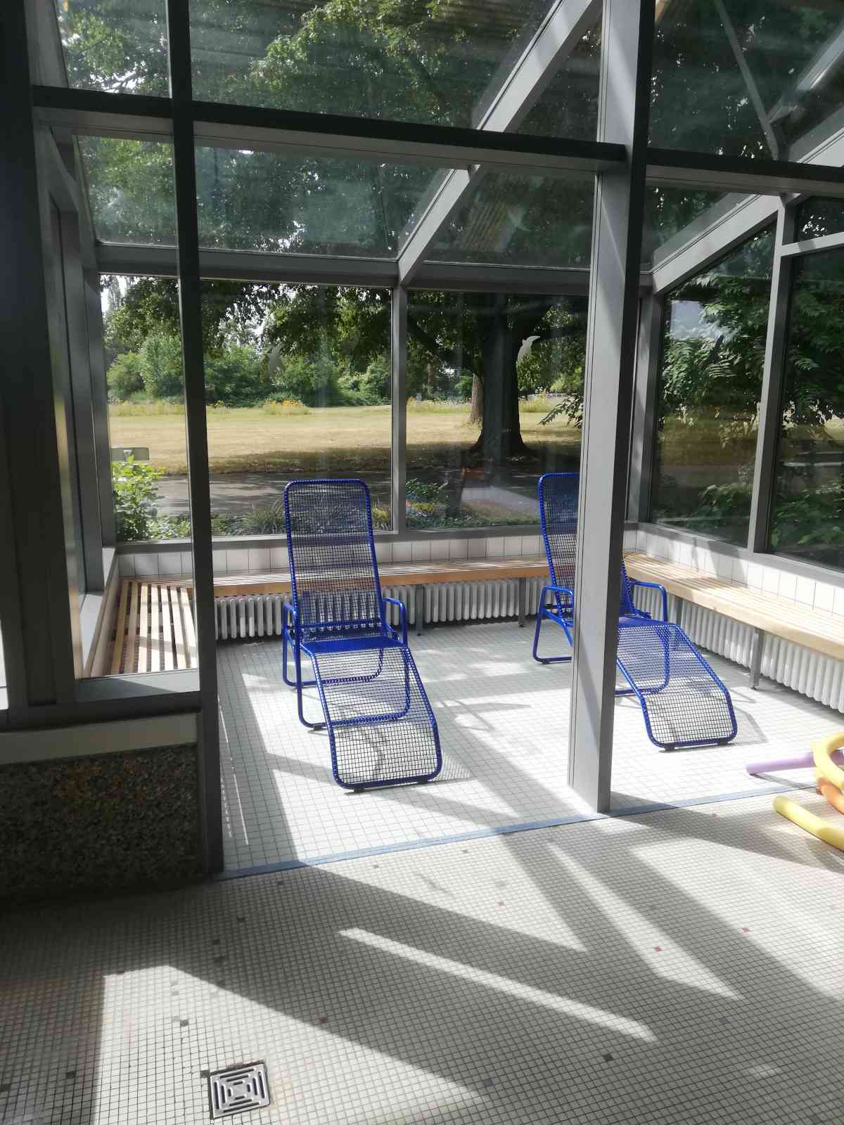 Bis auf weiteres bleibt uns das Fössebad in der bisherigen Form unweit der Grenze von Linden und Limmer noch erhalten (siehe unten). Für Kinder ist es weiterhin eine tolle Möglichkeit, um in den Sommerferien viel Spaß zu haben. Grund genug für Papa und Sohn an einem Wochentag ebenfalls dem Fössebad einen Besuch abzustatten. Vor der Tür waren um 10.30 Uhr nur wenige Fahrräder abgestellt und auf dem hauseigenen Parkplatz waren viele Plätze frei. Schön für uns als Schwimmer, denn zeitweise waren nicht einmal 10 Personen im 26°C warmen Schwimmerbecken (kuschlige 30°C sind es im Nichtschwimmerbecken). Selbst die Logenplätze im Ruhebereich waren noch frei.