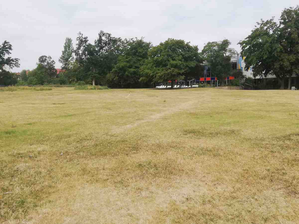 Die riesige Liegewiese mit dem alten Baumbestand im Außenbereich war bei knapp 20°C Außentemperatur verständlicherweise fast leer. Bei dem Anblick des abgesperrten, früheren Freibades mit den zwei Rutschen kam beim Streifenlassen der Gedanken an frühere Fössebad Zeiten etwas Wehmut auf. Selbst bei solchen Temperaturen war da immer etwas los.