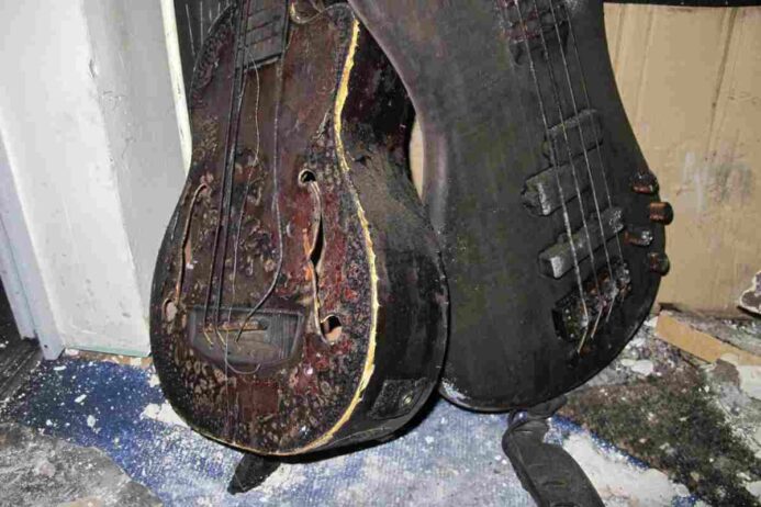Schaut man nach so einer Meldung hinter die Kulissen, stellt sich so ein Feuer ganz anders dar. Hier wurde ein Probenraum einer Lindener Band komplett vom Feuer zerstört. Wenn man bedenkt, dass dort nahezu alle Instrumente der Band beatbar gelagert waren… Jedes Mitglied hatte diverse Instrumente in diesem Raum; eine teure PA und das gesamte Studio samt Equipment sind verbrannt. Unbezahlbar ist natürlich der ideelle Wert. Über Jahrzehnte angeschaffte Gitarren mit großem Erinnerungswert, der Bass, der schon zu Primaries- und Czech-Zeiten (frühere Bands von Stef, Svea und Eric), also in den 80ern und 90ern gespielt wurde, ein Schlagzeug, Keyboard, Synthie, einige Ukulelen, Cajons, Percussioninstrumente, Trompete, Verstärker und so weiter.
