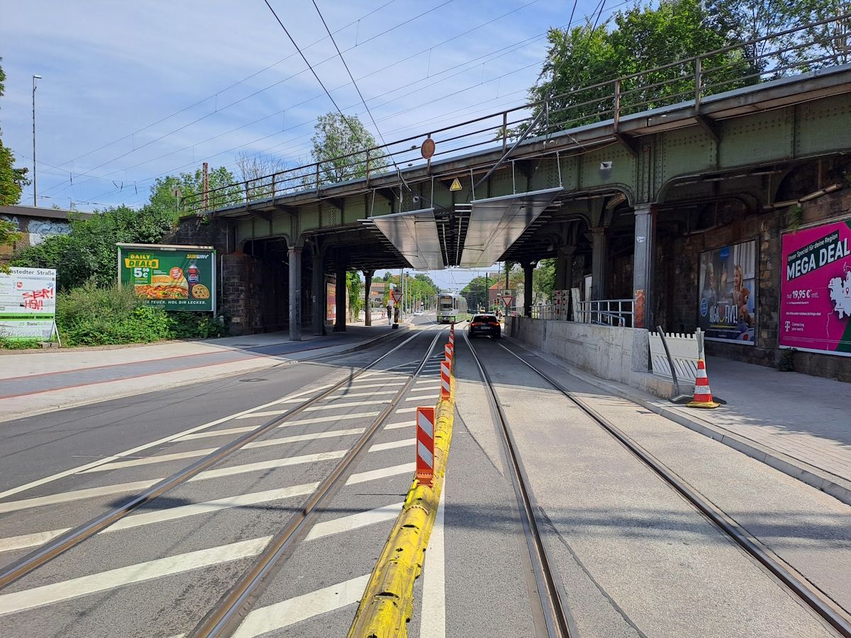 Um schon vor der Installation der Ampelanlagen die Straße komplett für den Verkehr freigeben zu können, haben infra, ÜSTRA und die Verkehrsbehörde der Landeshauptstadt Hannover eine Lösung gefunden. Während im Bereich Bartweg zunächst eine provisorische Ampelanlage in Betrieb geht, werden Autofahrerinnen und Autofahrer im Bereich der DB-Brücke, wo die Gleise wegen des begrenzten Platzes wieder in den Straßenraum verschwenken, durch eine entsprechende Beschilderung geführt. Hier soll voraussichtlich am 21. August 2024 eine Ampelanlage in Betrieb gehen.