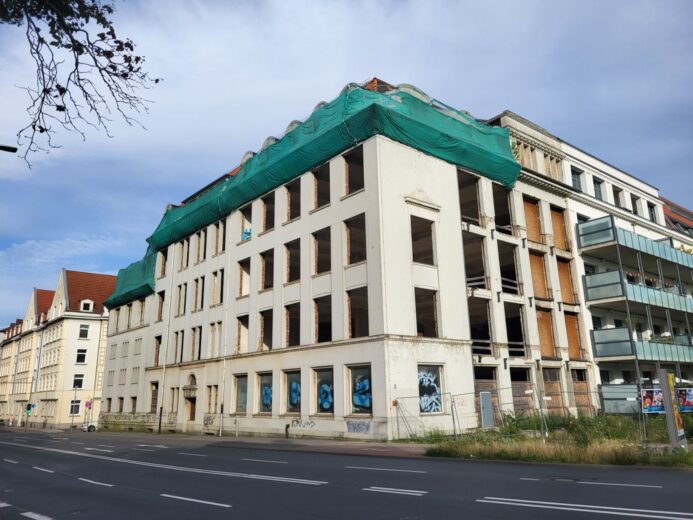 Das Gebäude an der Bornumer Straße 7 Ecke Bredenbecker Straße im Hanomag-Viertel in Linden-Süd steht seit vielen Jahren leer. Früher Teil der Hanomag-Verwaltung, wurden die Nachbargebäude mittlerweile umgebaut und in Wohnungen umgewandelt. Bereits vor etwa fünf Jahren plante ein hannoversches Architekturbüro für den früheren Eigentümer einen Umbau des Gebäudes für eine private Hochschule, doch die Planungen gerieten scheinbar durch die Corona-Pandemie und einen Eigentümerwechsel ins Stocken.