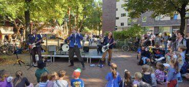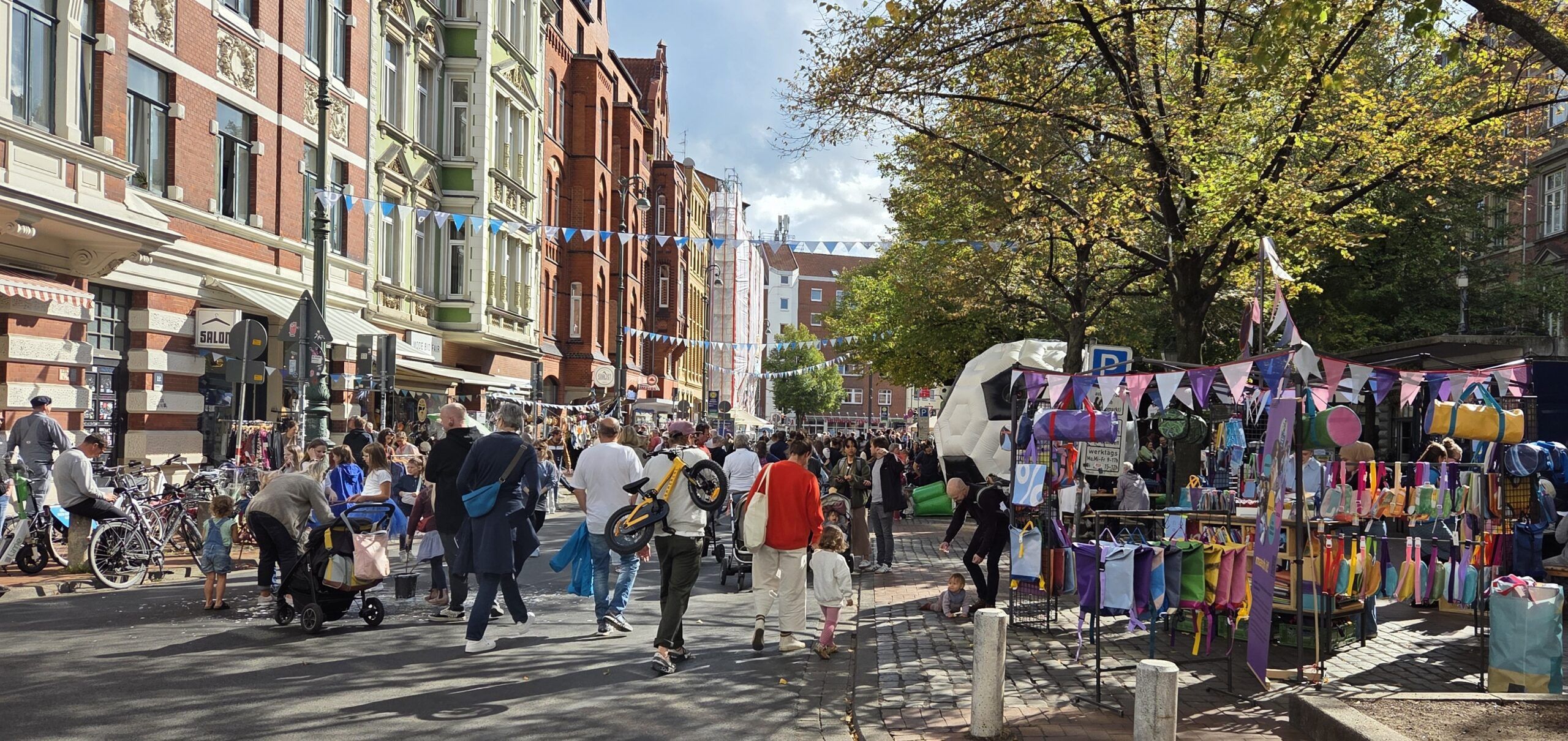 Wir freuen uns über die starke Resonanz für unser Stadtteilfest heute, das es aus Sicht der Stadtverwaltung gar nicht gibt. Denn unser Konzept, lokale Betriebe und Kunst und Kultur mit dem „Blauen Wunder – Lindener Butjermeile“ gemeinsam zu präsentieren und zu fördern, passt nicht in die Förderlogik des Wirtschafts- und Kulturamtes. Peter Hoffmann-Schönborn aus dem Organisationsteam nutzte die Anwesenheit der Dezernentin für Kunst und Bildung, Eva Bender, um für eine bessere Förderung zu werben.