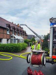Heute Nachmittag zog ein Gewitter mit anschließendem Regen über Hannover. Um 15:37 Uhr wurde die Feuerwehr alarmiert, da ein Blitz in den Dachstuhl eines Mehrfamilienhauses in der Lenther Straße in Hannover-Badenstedt eingeschlagen war. Ein Augenzeuge berichtete von einem lauten Knall, gefolgt von aufsteigendem weißem Rauch aus dem Haus. Nachbarn informierten die betroffene Familie und deren zwei Kinder, die sich gerade noch selbst retten konnte.