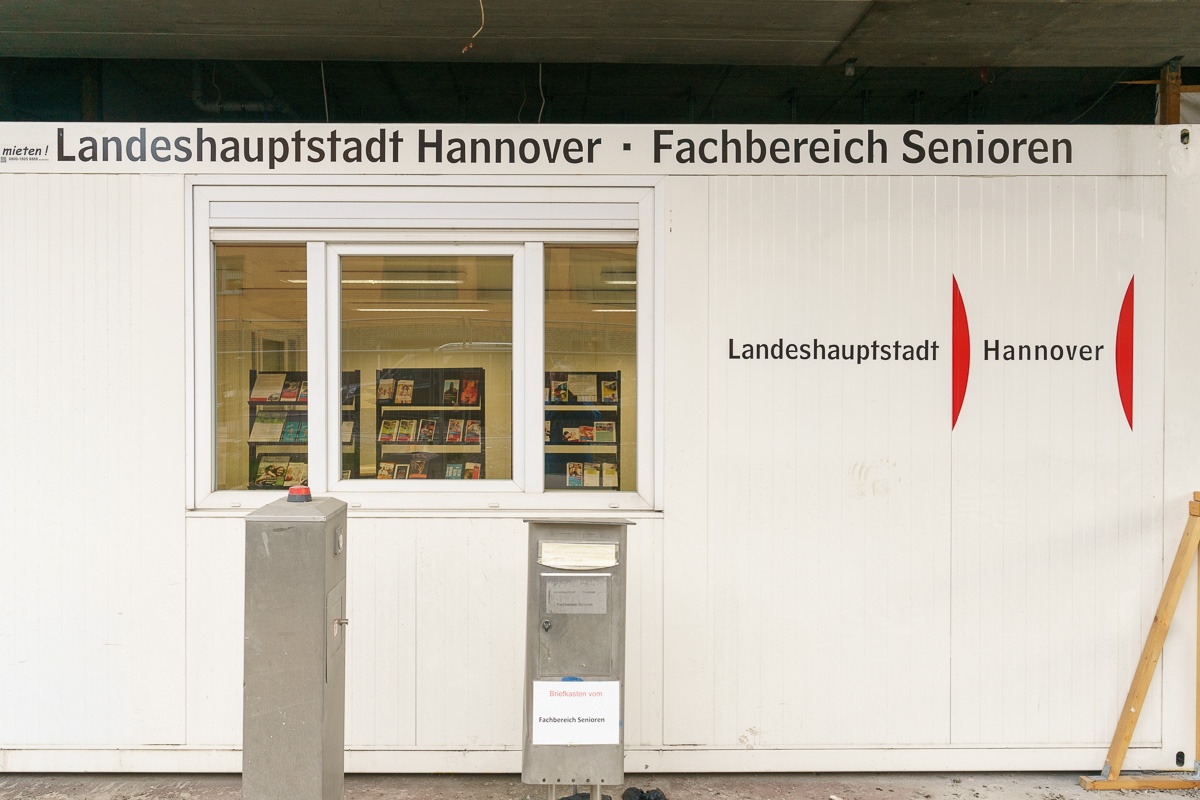 Bisher ist der Fachbereich Senioren der Landeshauptstadt Hannover in Räumlichkeiten im Sockelgeschoss des Ihme-Zentrums in der Ihmepassage Nummer 5 untergebracht. Früher war der noch einigermaßen ansehnliche Eingangsbereich zur Blumenauer Straße durch die Gestaltung in auffallendem Rot erkennbar. Doch dieser musste im Januar 2022 den Bauarbeiten am Ihme-Zentrum einem schäbigen Provisorium in Form eines Baucontainers weichen. Die Stadt war als Mieter im Ihme-Zentrum in der Hoffnung geblieben, Investor Windhorst durch die Androhung der Kündigung laufender Mietverträge dazu bewegen zu können, die Sanierungsarbeiten voranzutreiben. Dieses Druckmittel ist allerdings inzwischen als wirkungslos verpufft, der Immobilienunternehmer kommt seinen Verpflichtungen nicht mehr nach und brutalistische Beton-Koloss verkommt „unten herum“ zusehends.