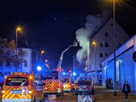 Am Dienstagabend (11.01.2022) gegen 20.15 Uhr gingen mehrere Anrufe zu einem Wohnungsbrand in der dritten Etage in einem Mehrfamilienhaus in der Fössestraße 22 in Linden-Nord in der Regionsleitstelle ein. Die Regionsleitstelle alarmierte zwei Löschzüge der Berufsfeuerwehr, die Ortsfeuerwehr Linden sowie den Rettungsdienst.