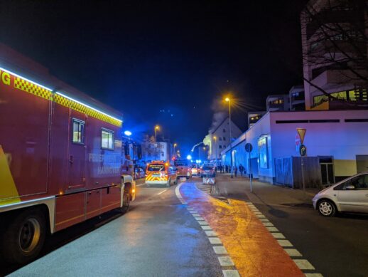 Bei Ankunft der ersten Einsatzkräfte schlugen bereits Flammen aus einem Fenster im dritten Obergeschoss des Eckgebäudes. Da zunächst noch eine Person in der Brandwohnung vermutet wurde, suchten zwei Trupps unter schwerem Atemschutz die betroffene Wohnung ab. Parallel wurde die Brandbekämpfung eingeleitet. In der Wohnung konnte keine Person aufgefunden werden. Der Mieter hatte sich, wie auch alle anderen Bewohner*innen des Gebäudes, zuvor selbstständig aus dem Haus begeben. Es wurde niemand verletzt.