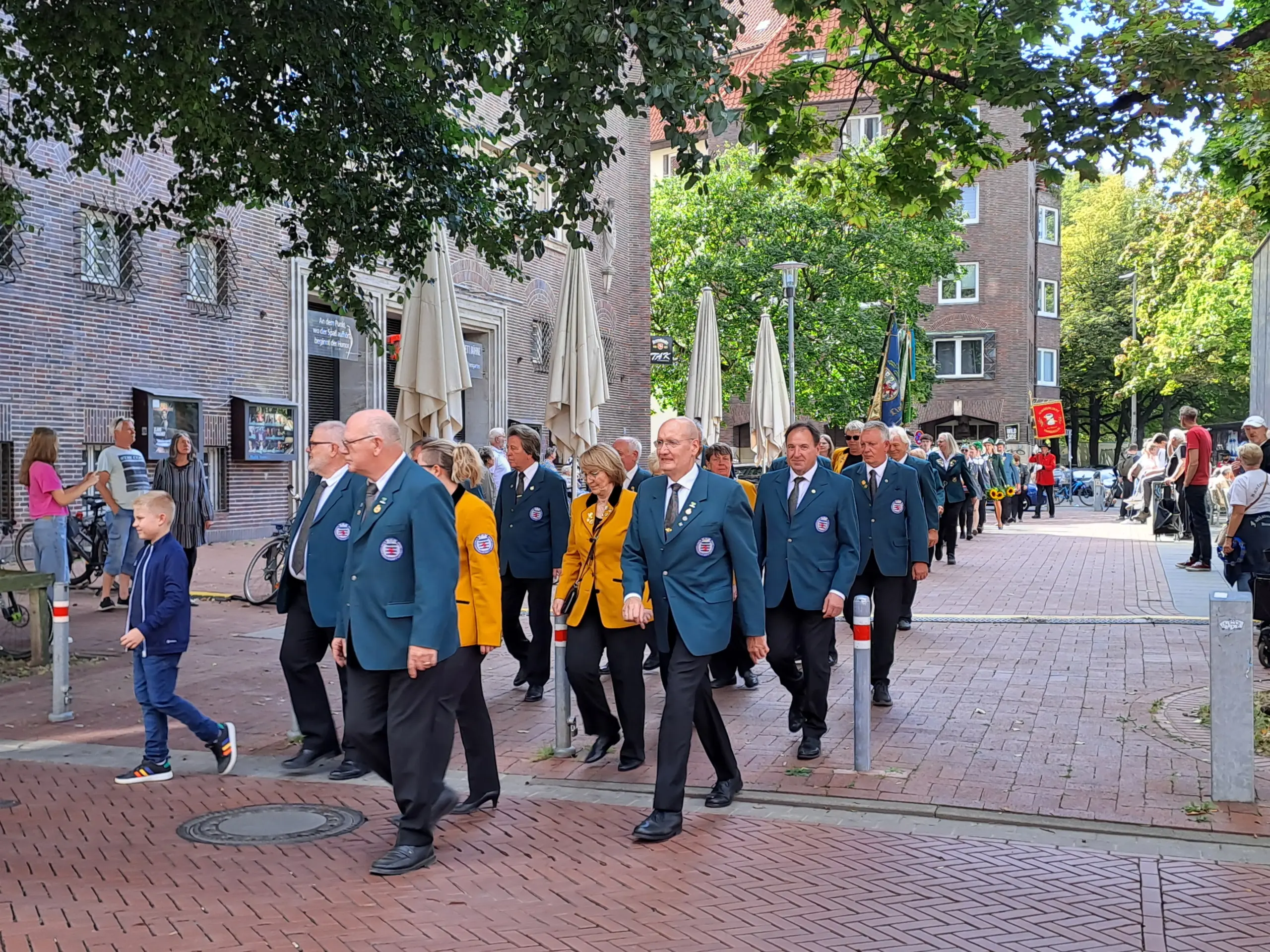 Der heutige Samstag, der 30. August 2025 stand ganz im Zeichen des traditionellen Festumzugs, der seit Jahrzehnten einen Höhepunkt des Schützenfestes darstellt. Begleitet von mehreren Fanfarenzügen marschierten die Schützenvereine mit ihren Fahnen und Abordnungen ab 16 Uhr vom TAK aus durch einige Straßen von Linden-Nord: Stephanusstraße – Gartenallee – Blumenauer Straße – Limmerstraße – Velberstraße – Ahlemer Straße – Limmerstraße – Festplatz. Zahlreiche Besucher säumten wieder die Wege und das schöne Wetter lud zusätzlich ein, den farbenfrohen musikalisch begleiteten Zug zu bestaunen.