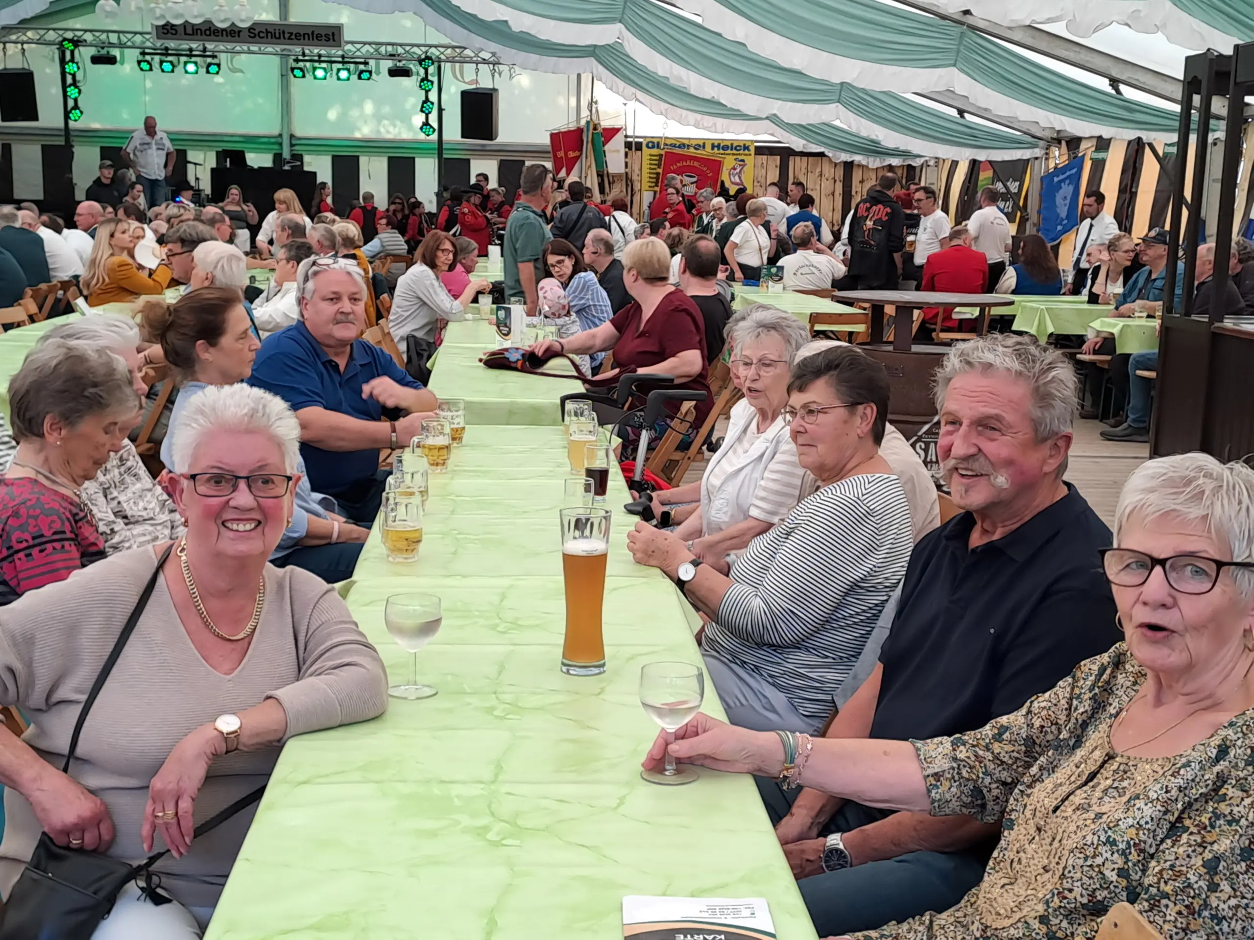 Am Festplatz angekommen, ging es im großen Festzelt weiter: Die anwesenden Musikzüge sorgten nach erfolgter Stärkung mit Bier (mit einem Preis von 6 € für 0,5 l), Würstchen oder Ähnlichem mit ihren Darbietungen für ausgelassene Stimmung. Auch die stellvertretende Bezirksbürgermeisterin Katharina-Sophia Gerking sowie der Vorsitzender der Arbeitsgemeinschaft Lindener Vereine e.V. (AGLV) Daniel von dem Knesebeck waren dabei.