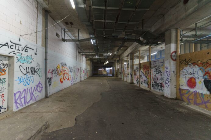 Was ist in den vergangenen 1 1⁄2 Jahren passiert? Ein Wort reicht dafür aus: nichts. Kurze Zeit später wurden die Arbeiten eingestellt, auch von diesen Aussagen ist nichts übrig geblieben. So sah die u.a. die alte Ladenstraße, die Ihmepassage und der Ihmeplatz in der heutigen Ruine Ihme-Zentrum vor einigen Tagen aus: