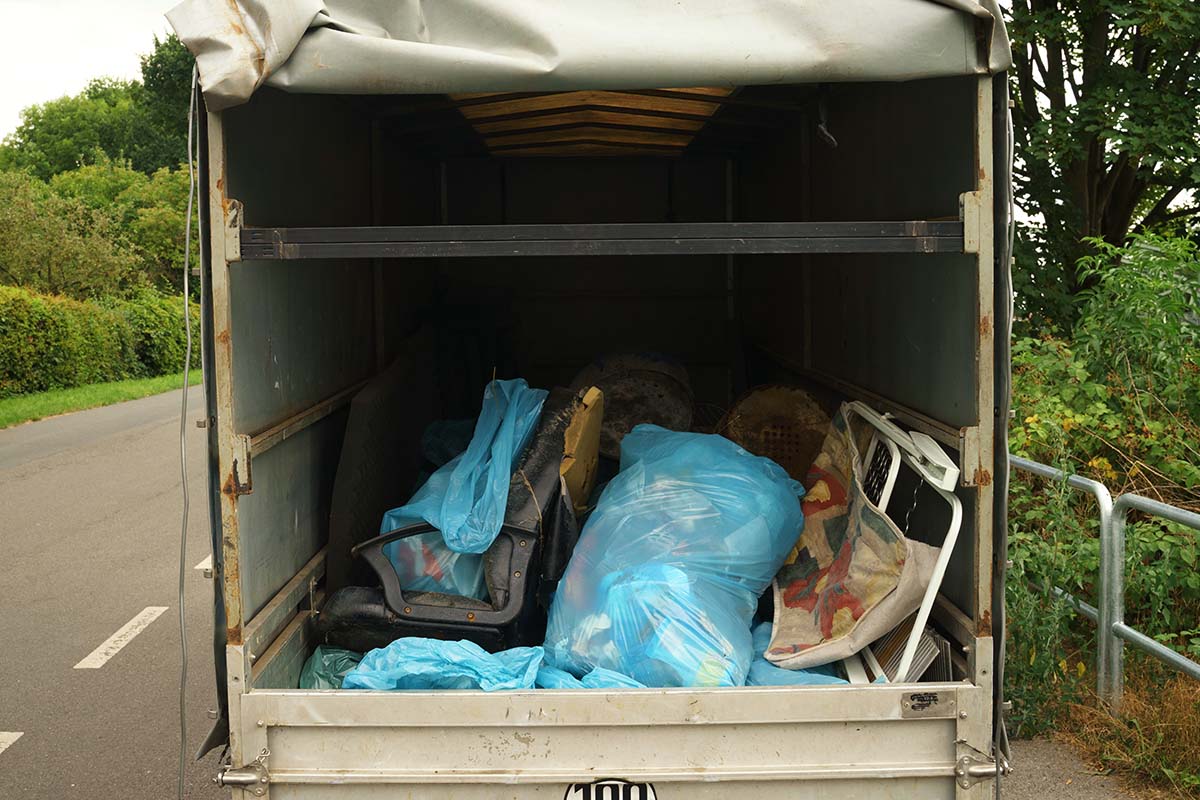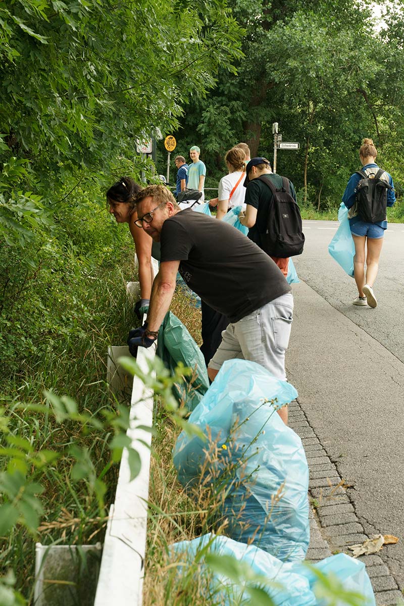 Die Gruppe arbeitete sich in verschiedene Richtungen entlang der Kanalufer durch die Grünstreifen und Böschungen vor und forderte dabei erschreckende Mengen an Unrat zutage. Die dafür veranschlagen vier Stunden erwiesen sich als verblüffend gut geplant: Ziemlich genau um 15 Uhr waren beide Kanalseiten abgearbeitet. Auf dem Anhänger sammelten sich zahlreiche Säcke mit Abfall und Altglas. Sicherheitsabstände waren bei den Aufräumarbeiten kein Thema, weil sich diese von allein regulierten.