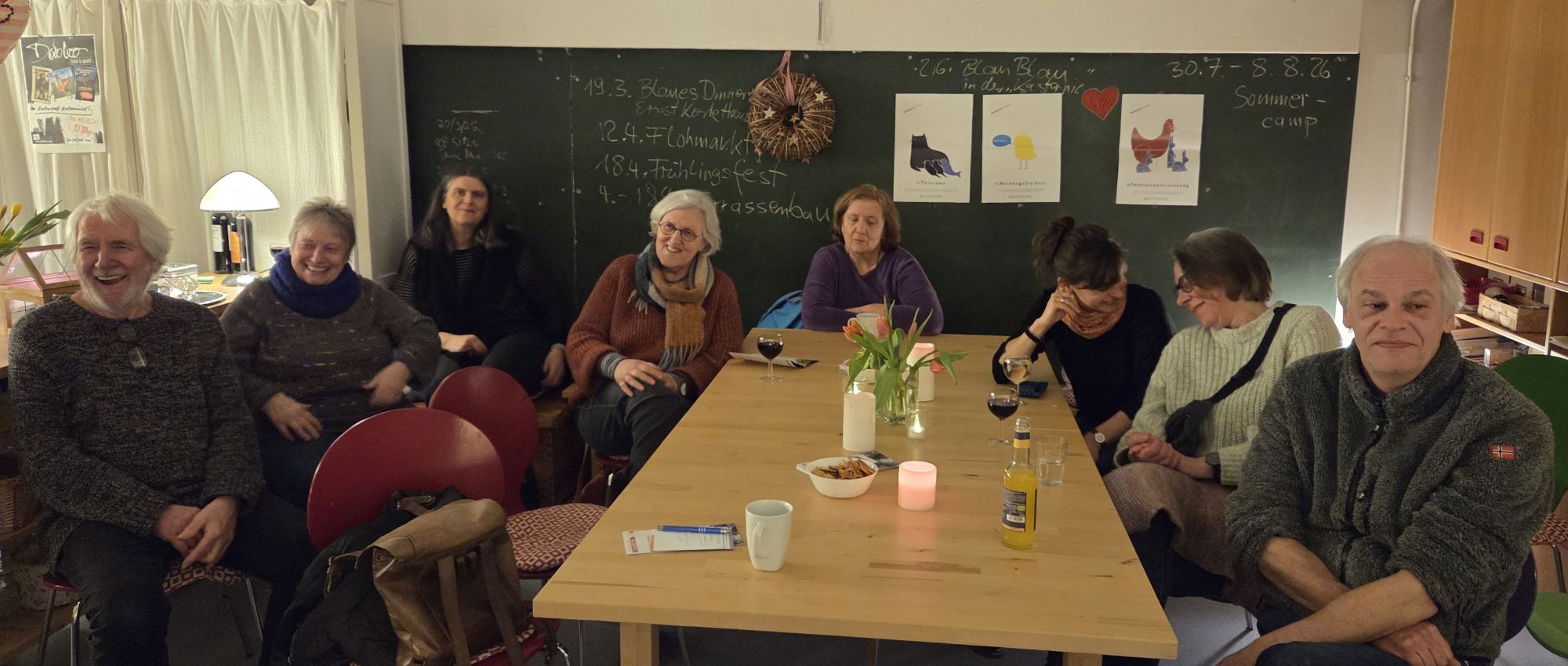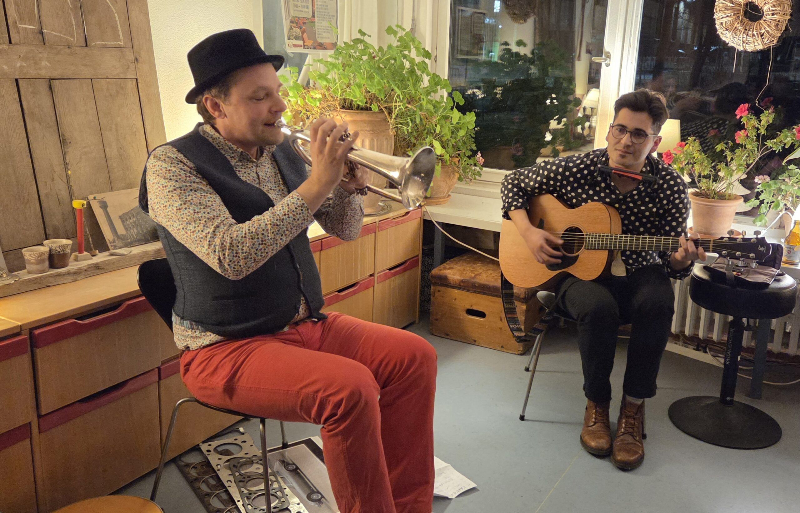Die Stühle sind zum Auftaktabend 2026 schnell besetzt. Heißer Kräutertee, Kaltgetränke, saure Gurken oder salziges Knabbergebäck wie aus den 70er Jahren passen zu den gefühligen Alltagssongs der Texter „Till Wiesel und die Kopfdichtung“ und „Herr Müller und sein Chauffeur“. Ihre Texte über Beziehungen, den täglichen Kaffeekonsum oder die Auf- und Ab’s im Alltag sprechen an und unterstützen den Eindruck, im Kastanienhof ist man zu Hause. Seit rund 26 Jahren gibt es den Kulturtreff, seit acht Jahren das „Kastanie Spezial“, bei dem Caro und Thomas Sänger*innen und Songwriter*innen oder Instrumentalist*innen. Mehr als 50 Kunstschaffende sind es in den bisher 23 Veranstaltungen gewesen.