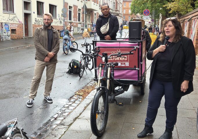 Seit Montag sind die Schülerinnen und Schüler bei Workshops mit Themen rund um Mobilität und Schulwege beschäftigt. Heute eröffneten die Leiterin der Grundschule Lindener Markt, Christiane Reineke, und Martin Nebendahl von der Stabsstelle Mobilität des Oberbürgermeisters die Mobile Woche 2025 in der Davenstedter Straße in Linden-Mitte.