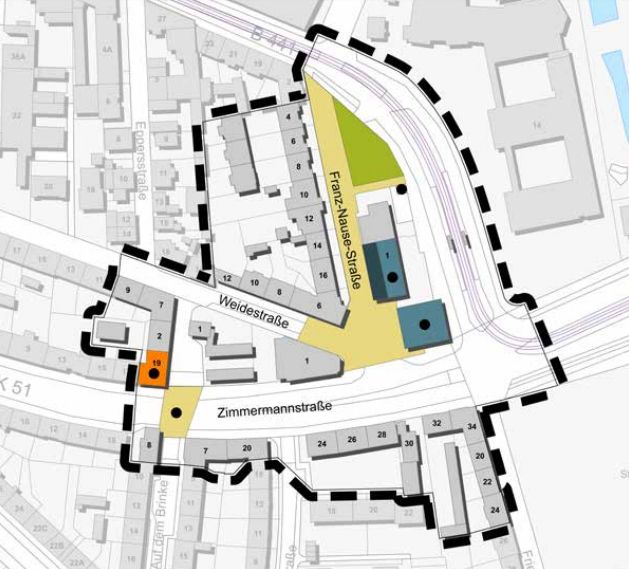 „Unsere Planung ist eng mit der Stadt abgestimmt“, sagt deren Geschäftsführer Dr. Hanno Ziehm. Noch offen sei, wie das Vorhaben realisiert werde, da „wir möglichst viele Geschäftsinhaber in der Ladenzeile dort halten wollen“. Das Grundstück hatte die Gesellschaft im Mai 2024 erworben. Mit dem Bauvorhaben rundet sie ihre städtebaulichen Aktivitäten am Standort der Stichweh-Zentrale in der Färberstraße seit 2010 ab.