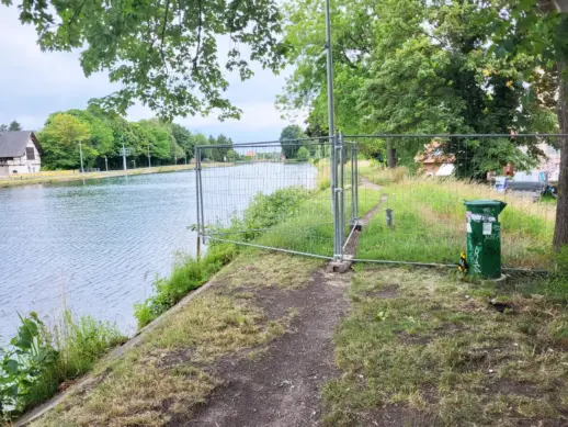 Ich glaube nicht das die Maßnahme zu einer großen Reduktion der Belästigung der Anwohner durch Kanalbesucher führen wird, da die Fläche von der Absperrung bis zur Kanalbrücke ja weiterhin frequentiert werden kann. Falls dieser Effekt denn im Vordergrund stände, hätte man dann schon Nägel mit Köpfen machen müssen und das ganze Areal bis zur Brücke abriegeln.