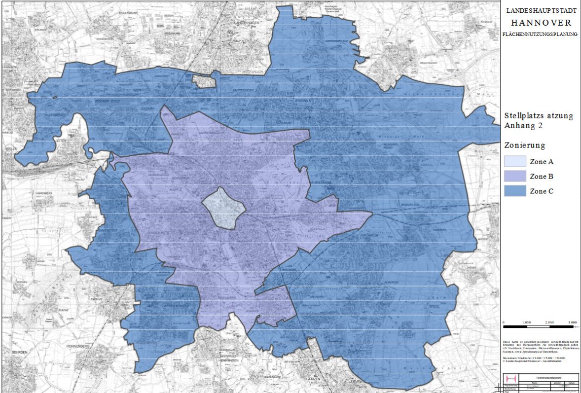 - Die Zone B mit 17 Stadtteilen und einem Teil von Hannover-Mitte schließt sich einem 3000-Meter-Gürtel an.