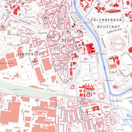 Die achte Auflage des Stadtatlas Hannover (Stand 2025) liegt vor – als Ringbuch im DIN A4-Format oder digital. Er enthält neben der Stadtkarte auch Detaildarstellungen etwa zu Linden-Süd oder Limmer, Luftbilder, Darstellungen großer Baugebiete wie der Wasserstadt Limmer und Übersichtskarten der Kleingartenkolonien.