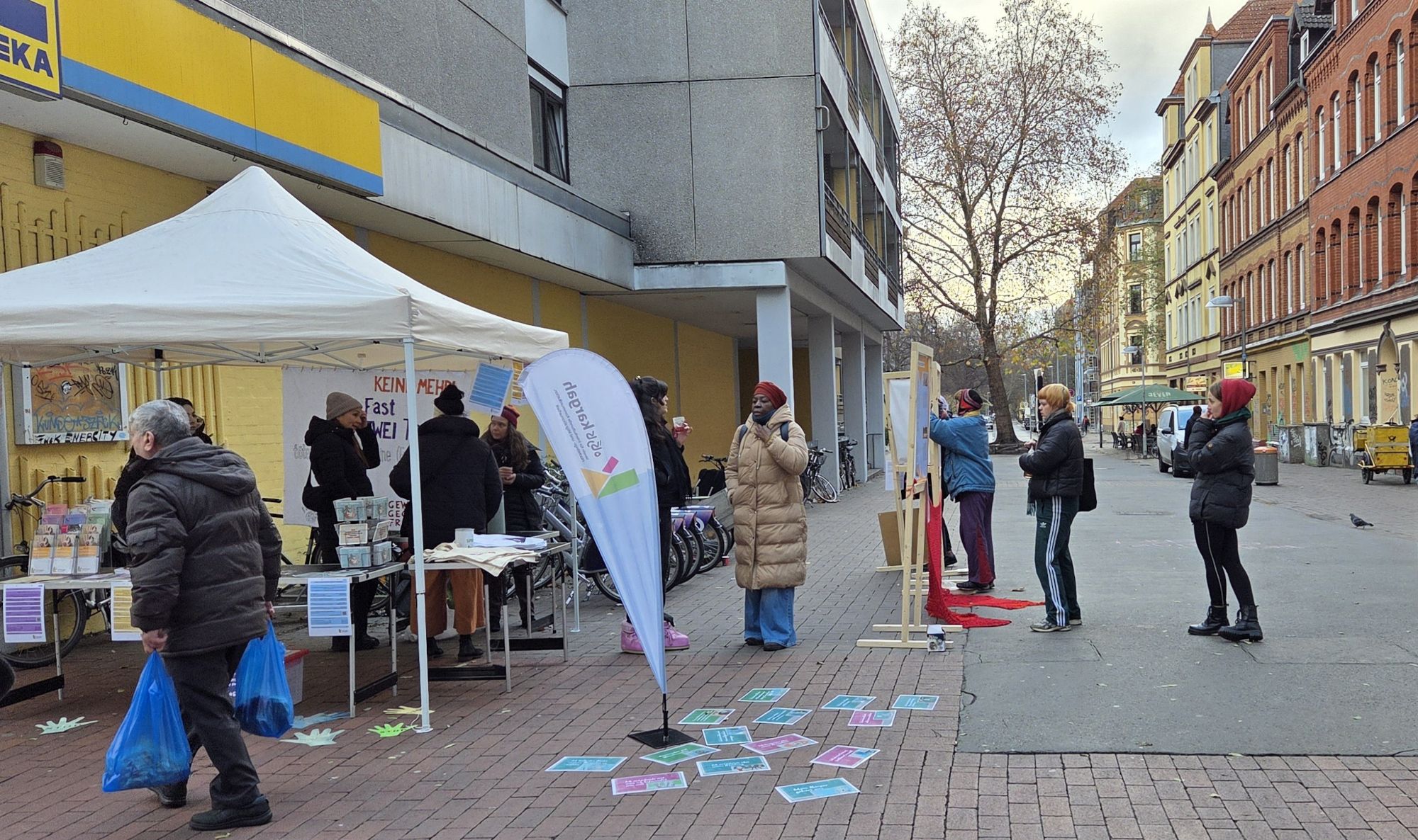 Traditionell dabei sind mit dem Infostand an der Limmerstraße der Frauen*treff La Rosa/kargah, die Frauenberatungsstelle SUANA/kargah. Erstmals nutzen auch Aktive des „Netzwerk gegen Feminizide“, „Riot statt Rosen“ und „Gemeinsam Kämpfen“ die Möglichkeit, mit einer Ausstellung über das Thema Feminizide (Tötungsdelikte, bei denen Frauen aufgrund ihrer Stellung als Frau in der Gesellschaft getötet werden, nicht etwa zufällig oder aufgrund individueller Umstände) zu informieren.