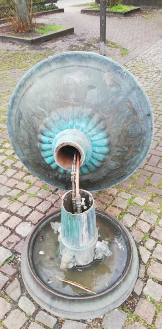 Gestern machte uns eine Leserin darauf aufmerksam, dass dieser Brunnen nun wieder umgestürzt sei, woraufhin wir darüber die zuständige Stelle bei der Stadt informiert haben.