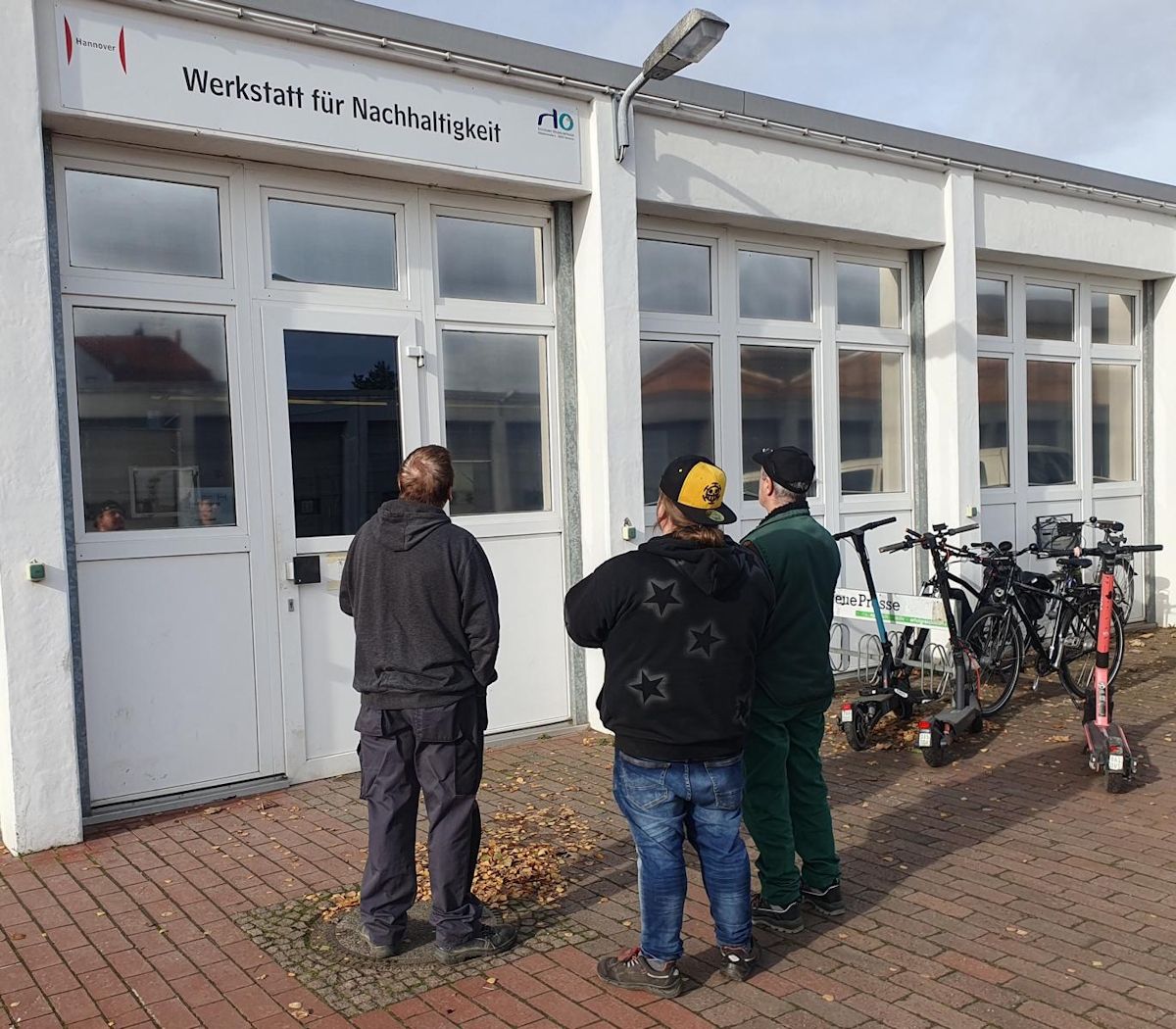 Die „Werkstatt für Nachhaltigkeit“ liegt ein bisschen versteckt am Rande des Gewerbegebiets Lindener Hafen. In einer rückwärtigen Halle am Bauweg Nr. 13 unterhält die Landeshauptstadt Hannover eine Upcycling-Werkstatt. Bis zu 35 Langzeitarbeitslose sind hier tätig, insbesondere werden gespendete Fahrräder aufbereitet. Diese kommen u. a. vom Fundbüro, der ÜSTRA sowie von privaten Spendern.