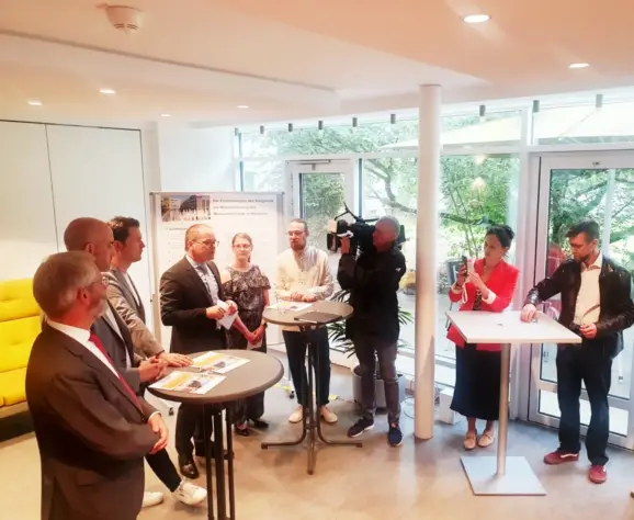 Im Beisein von Niedersachsens Wirtschafts- und Verkehrsminister Grant Hendrik Tonne, dem Regionspräsidenten, Steffen Krach, dem Oberbürgermeister von Hannover, Belit Onay, sowie dem Präsidenten der Niedersächsischen Landesstraßenbaubehörde (NLStBV), Timo Quander, überreichen Jessica Stössel und Rico Towe unter großem Medieninteresse stellvertretend für den Bürgerrat an diesem Dienstagmittag Empfehlungen zur Sanierung des Westschnellwegs.
