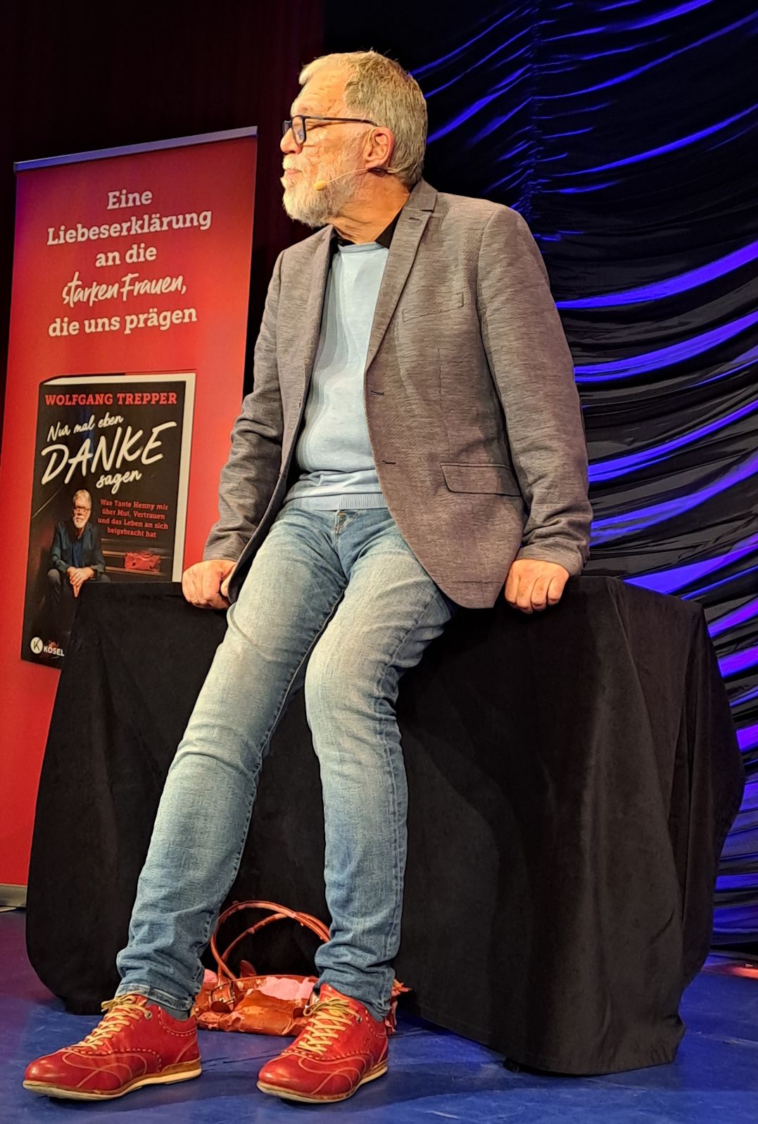Am Ende der sehr lebendigen Lesung blieb ein Publikum, das gleichermaßen gerührt, erheitert und beeindruckt war. Herrlich! Mit „Nur eben mal Danke sagen“ – übrigens mit einem Vorwort von Torsten Sträter – ist Wolfgang Trepper ein Werk gelungen, das mitten ins Herz trifft – ehrlich, humorvoll und voller Leben. Ein Abend, der zeigt: Hinter der lauten Stimme steckt ein großer Erzähler mit Gefühl und Haltung und roter Tasche.