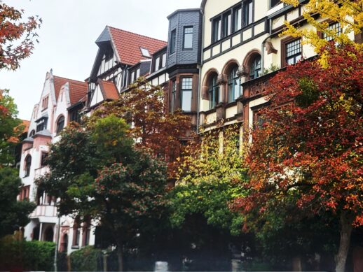 Die breite, von alten Bäumen gesäumte Wohnstraße mit ihren Vorgärten vermittelt noch heute das Flair vergangener Zeiten – ein ruhiges, grünes Stück Geschichte mitten in Linden.