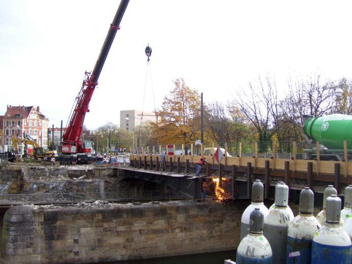 Bilder vom Abriss der alten Brücke im Jahr 2008: